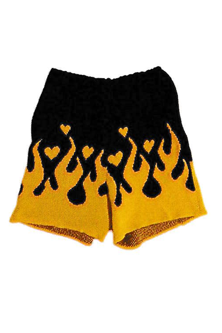 COTTON KNIT FLAME PATTERN SHORTS{-BFS}[PD26SP01-ORG-2]