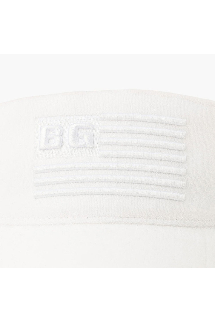 星条旗モチーフの立体的なBGロゴ刺繍が存在感を放つ、パイル素材のサンバイザー。