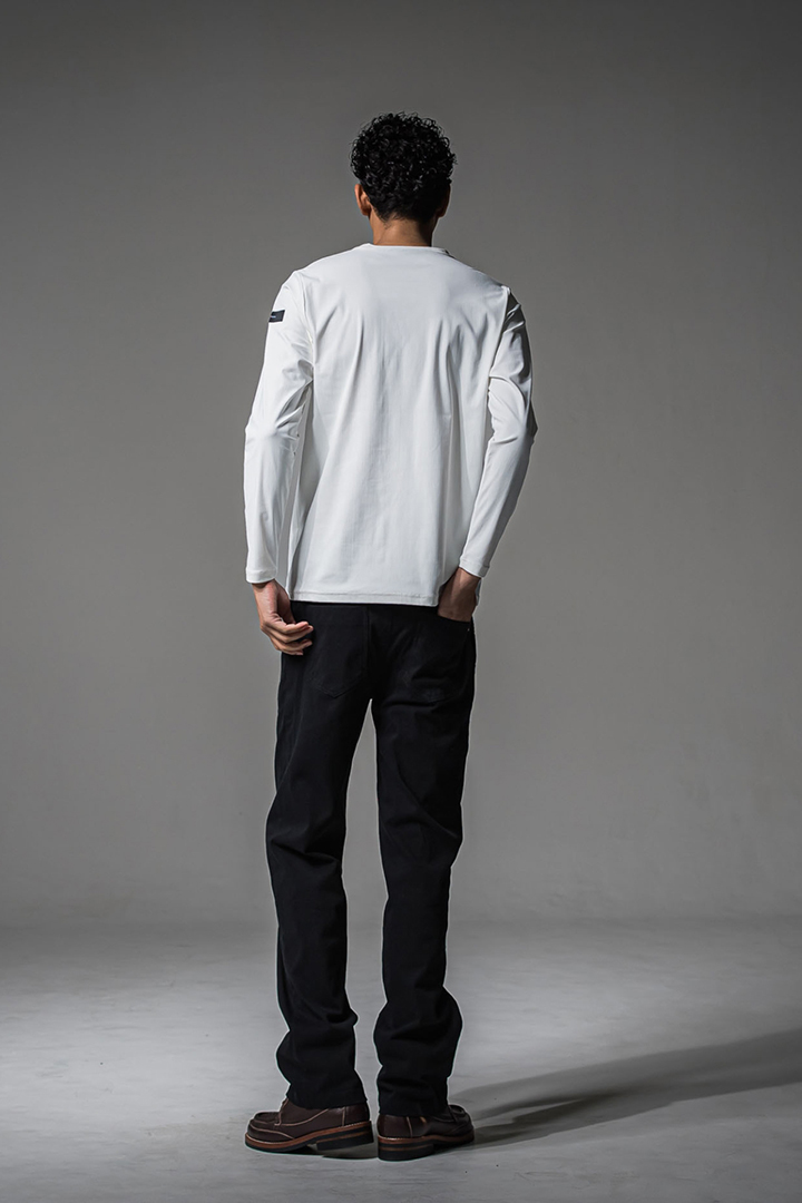 シンプルなのに一枚でもカッコよくスタイリングできるロン Tはありそうでない