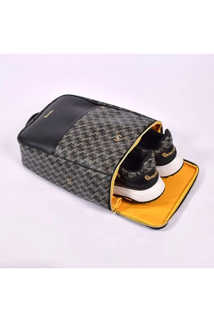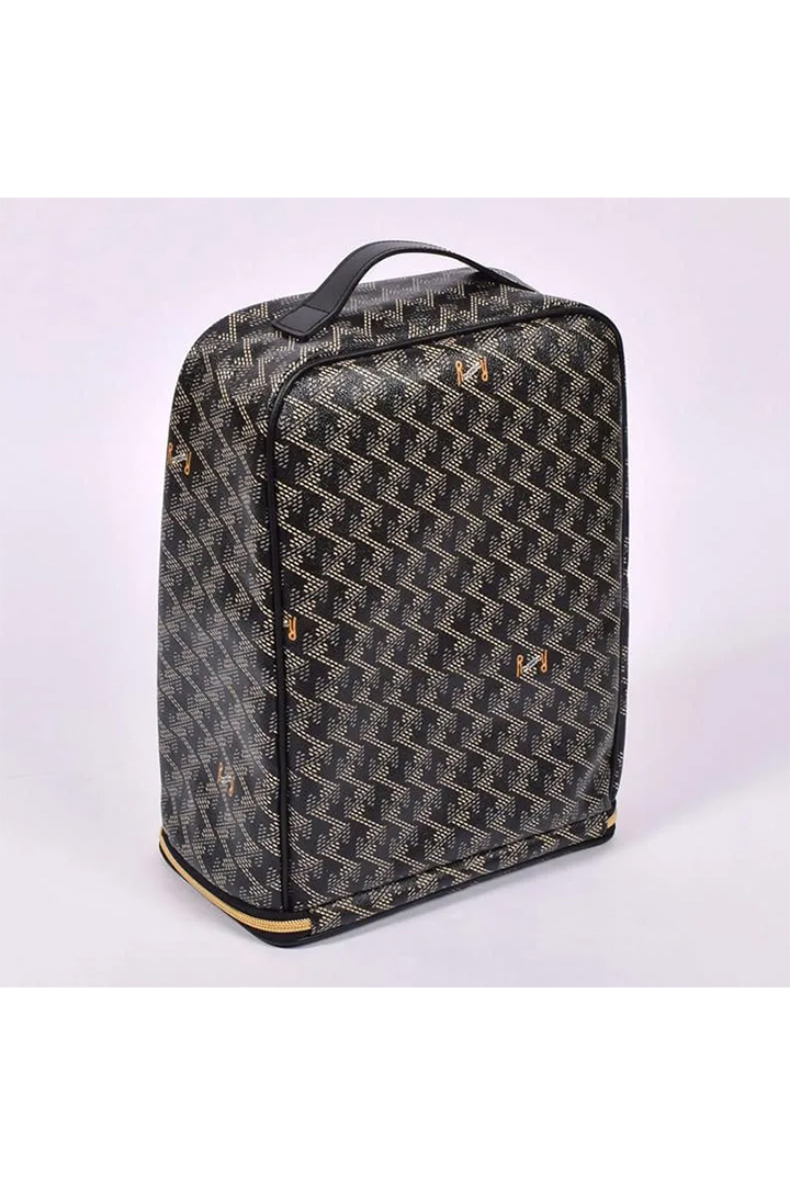 もう一つの特徴は、立てたまま置ける設計。クラブハウスでの受付時やラウンド後のひととき、ボストンバッグと並べても、シューズケースを横にすることなく美しく配置が可能です。