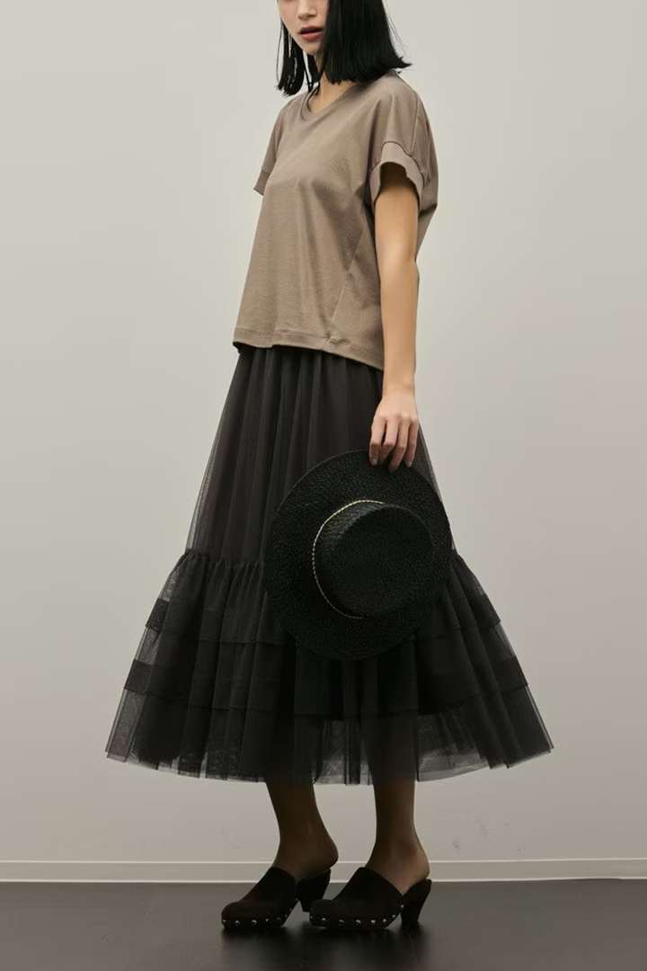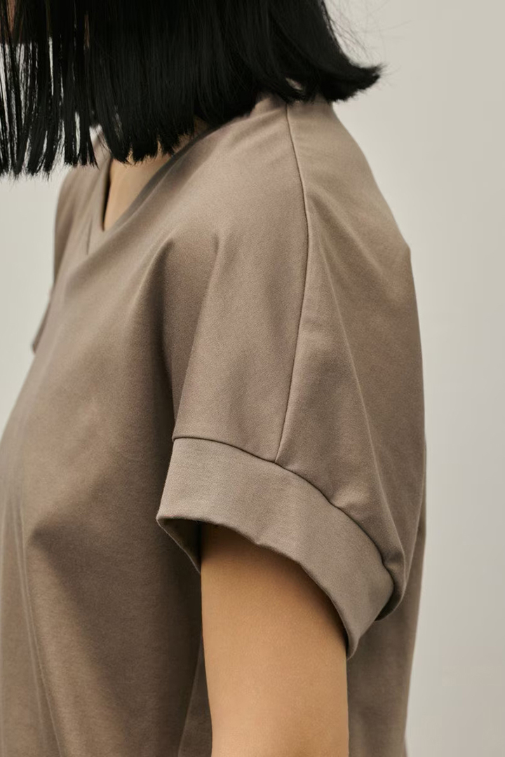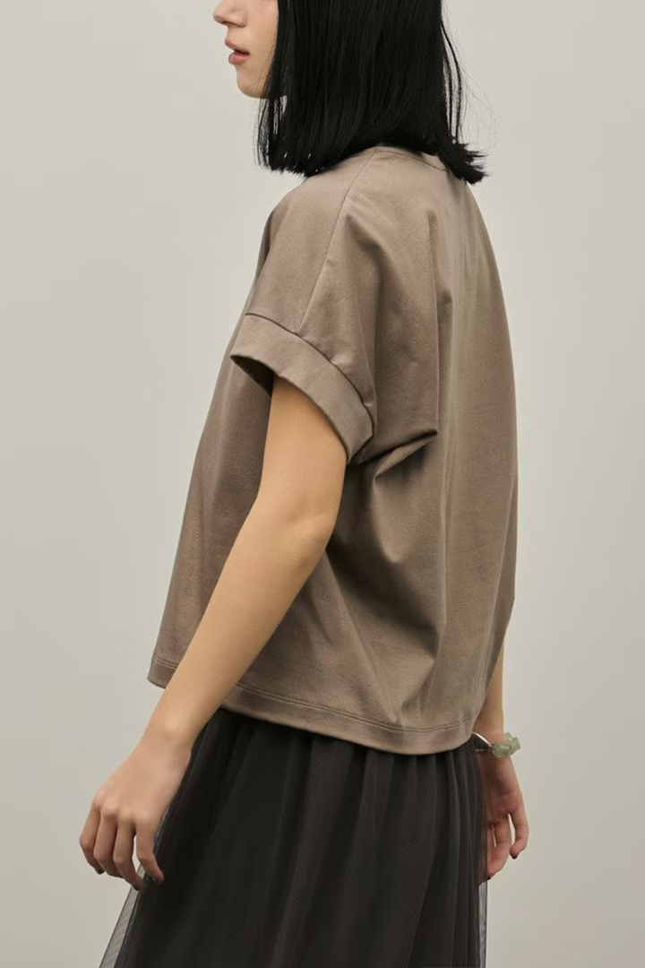 無地で着合わせやすい、夏の主力兼定番トップスとして重宝する一品です。