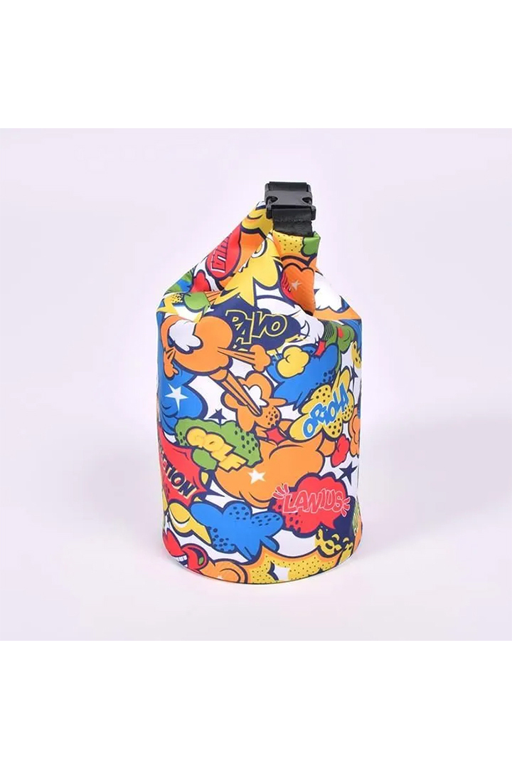 ポップなコミック柄と、ブランドロゴが映えるラグーングリーン。