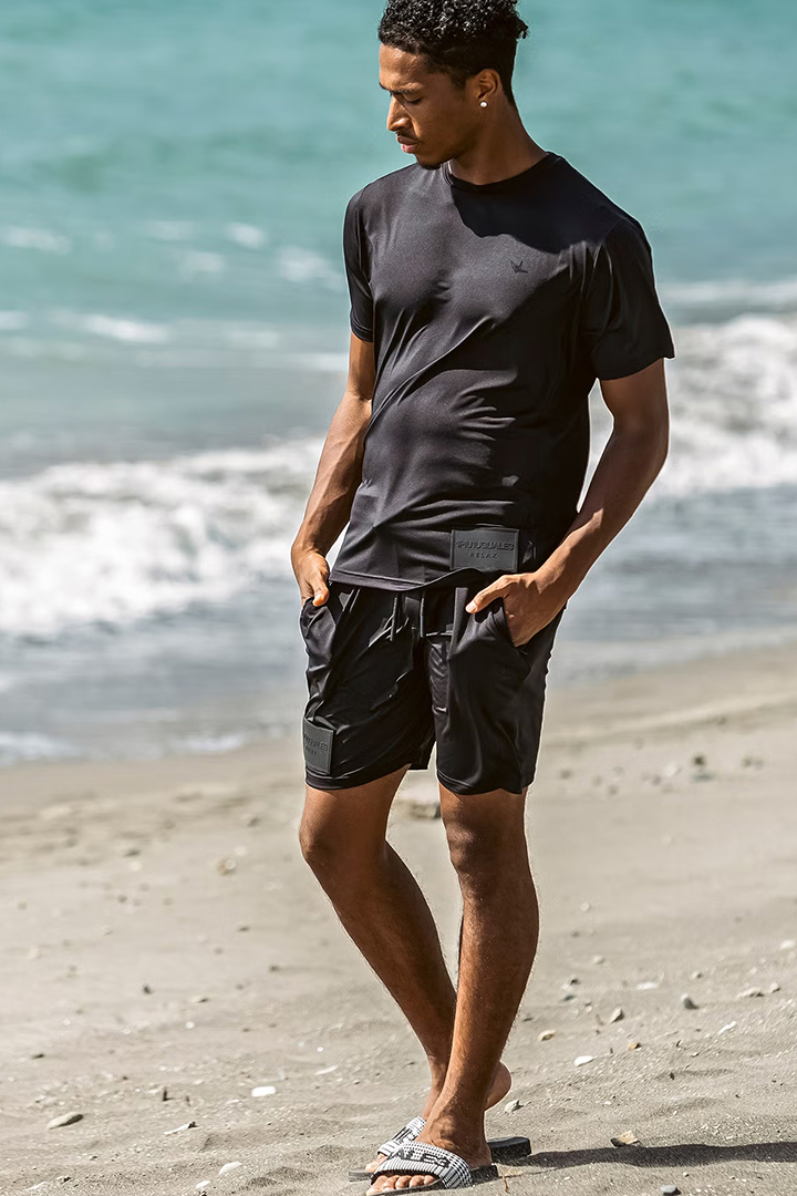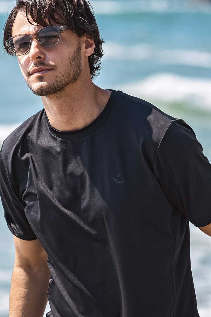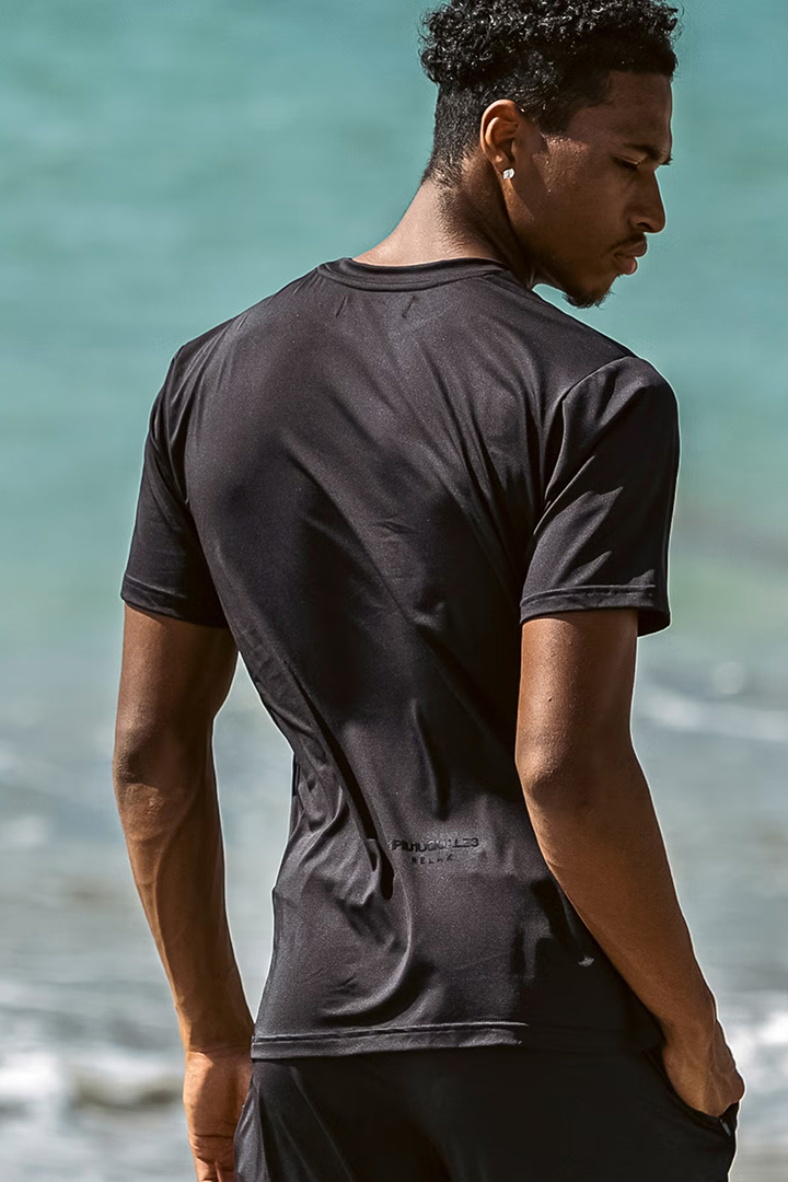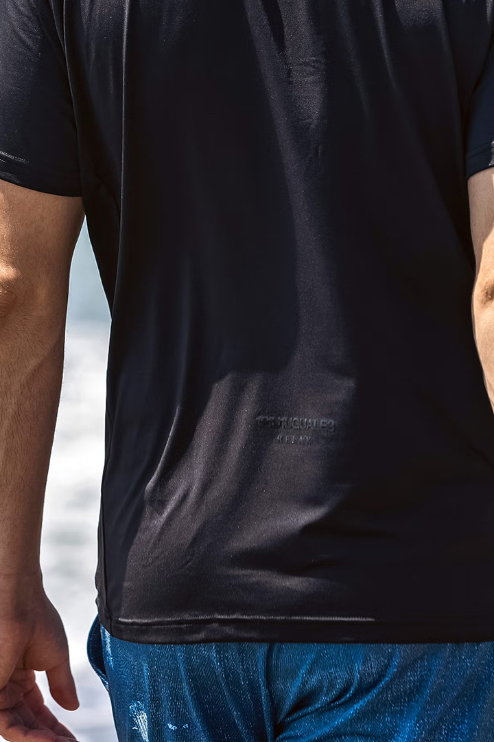 1piu1uguale3 RELAX ウノピゥウノウグァーレトレ リラックス ラインロゴラッシュガード半袖Tシャツ{-BFS}[UST-26044-BLK]