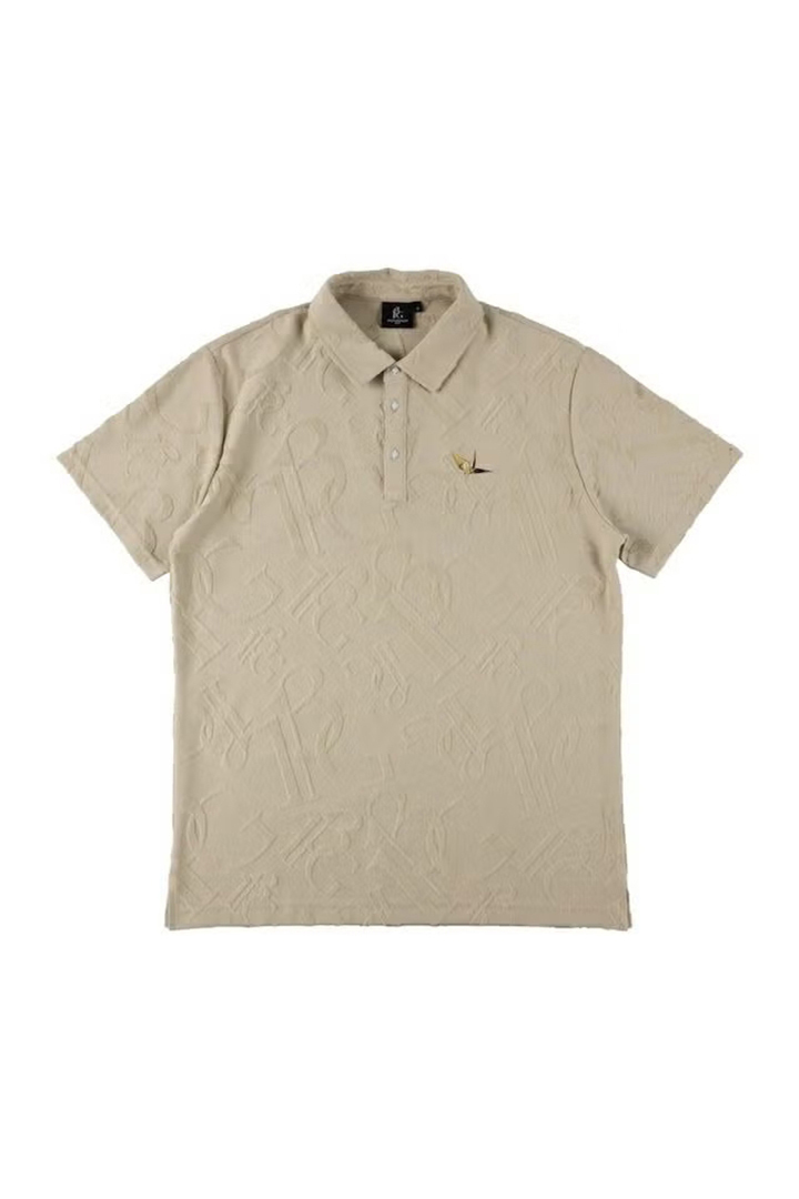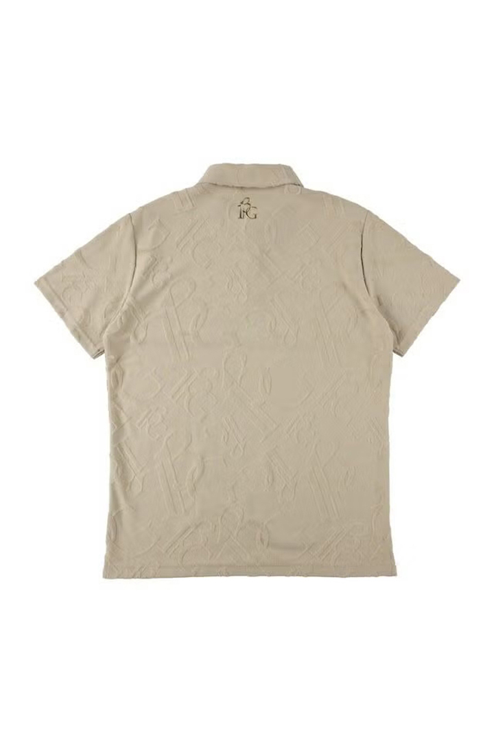 1PIU1UGUALE3 GOLFのアイデンティティを象徴するオリジナルロゴを高度なジャガード技術で表現した特別なパイルポロシャツ。厳選されたコットンとポリエステルを独自の黄金比でブレンドすることで、天然素材の優しく柔らかな肌触りとスポーツシーンに欠かせない吸湿性・形状安定性を高い次元で両立させました。最大の特徴は、独自の織りによって浮かび上がる立体的なモノグラム柄。光の角度によって絶妙な陰影を生むパイルジャガードは、プリントでは決して表現できない奥行きと重厚感を放ちます。汗を素早く吸収しながらもパイル特有のふんわりとしたボリュームが肌へのベタつきを抑え、真夏のプレー中も常にリラクシングでラグジュアリーな着心地をキープ。コース上での圧倒的な存在感はもちろん、アフターゴルフのクラブハウスでも格別の気品を漂わせるまさに「至高」の一着です。