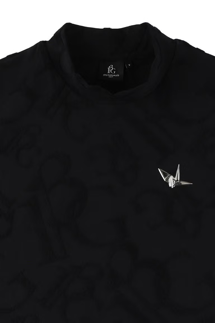 1PIU1UGUALE3 GOLFのアイデンティティを象徴するオリジナルロゴを高度なジャガード技術で表現した特別なパイル・モックネックシャツ。厳選されたコットンとポリエステルを独自の黄金比でブレンドすることで、天然素材の優しく柔らかな肌触りとゴルフシーンに欠かせない吸湿性・形状安定性を高い次元で両立させました。最大の特徴は、独自の織りによって浮かび上がる立体的なモノグラム柄。光の角度によって絶妙な陰影を生むパイルジャガードは、プリントでは決して表現できない奥行きと重厚感を放ち、首元のモックネックデザインがその洗練された表情をより一層モダンに際立たせます。汗を素早く吸収しながらもパイル特有のふんわりとしたボリュームが肌へのベタつきを抑え、真夏のプレー中も常にリラクシングでラグジュアリーな着心地をキープ。コース上での圧倒的な存在感はもちろん、ジャケットのインナーとしても映えるその佇まいは、アフターゴルフのクラブハウスでも格別の気品を漂わせます。