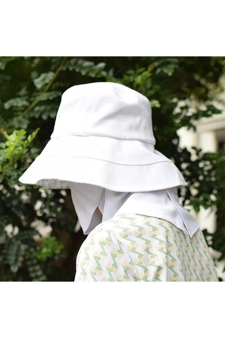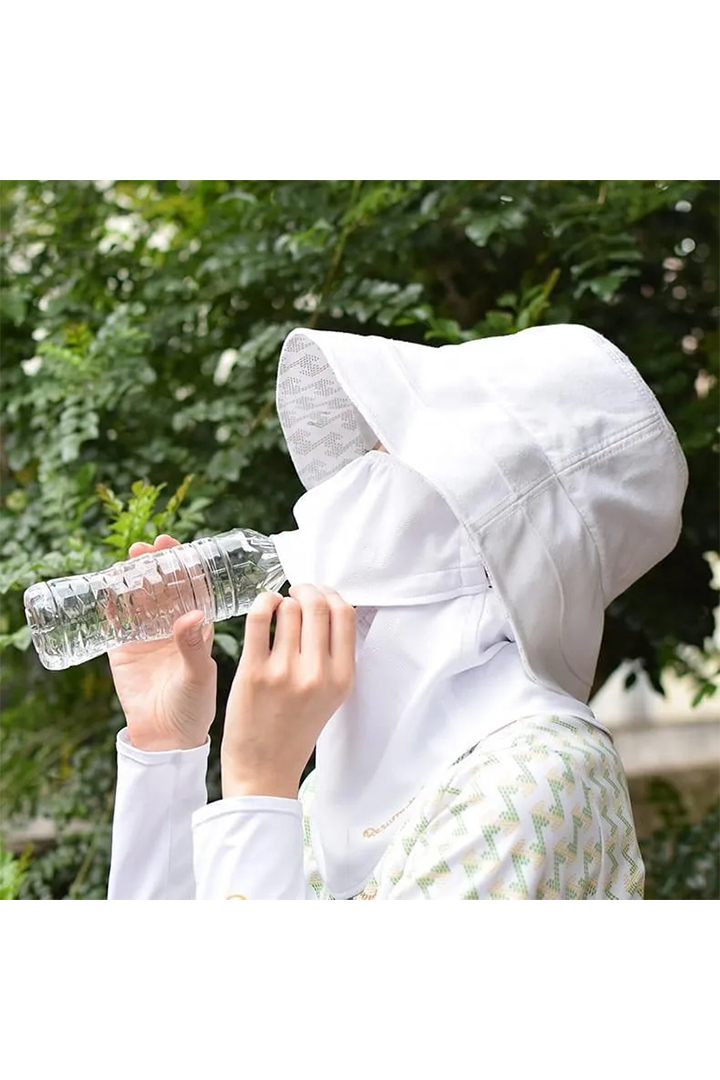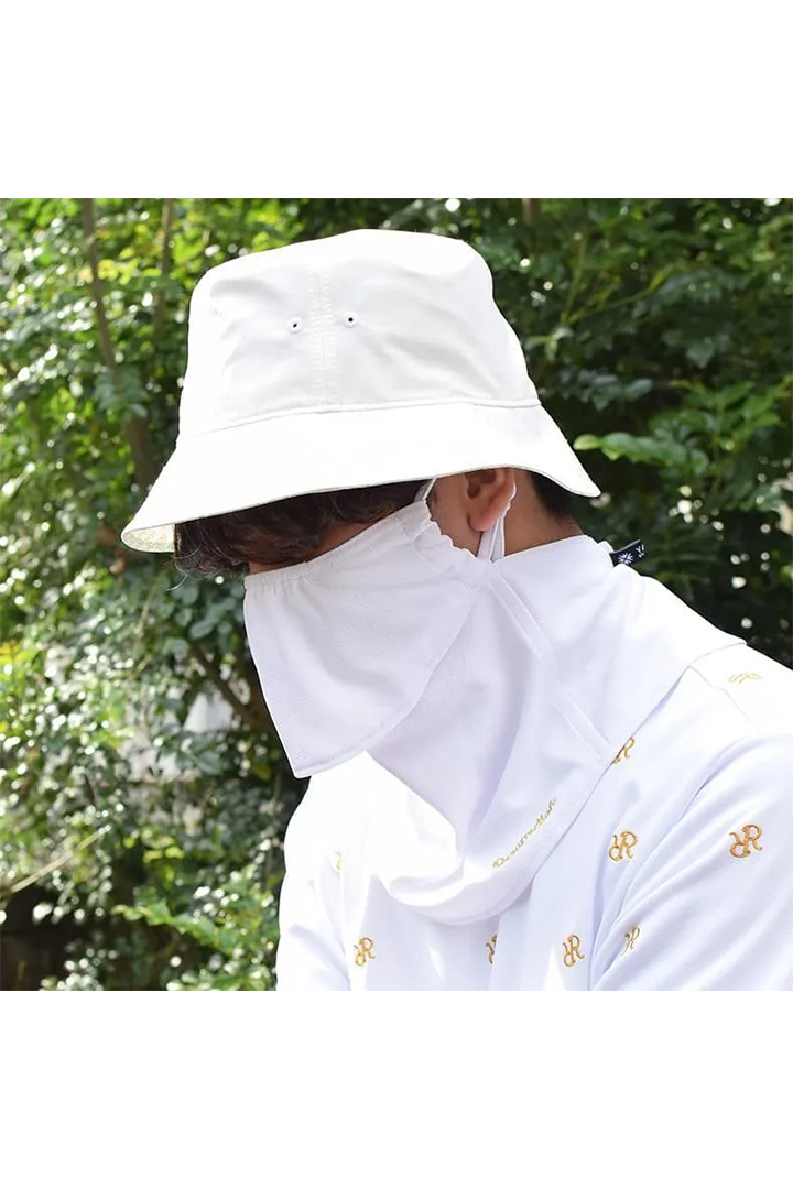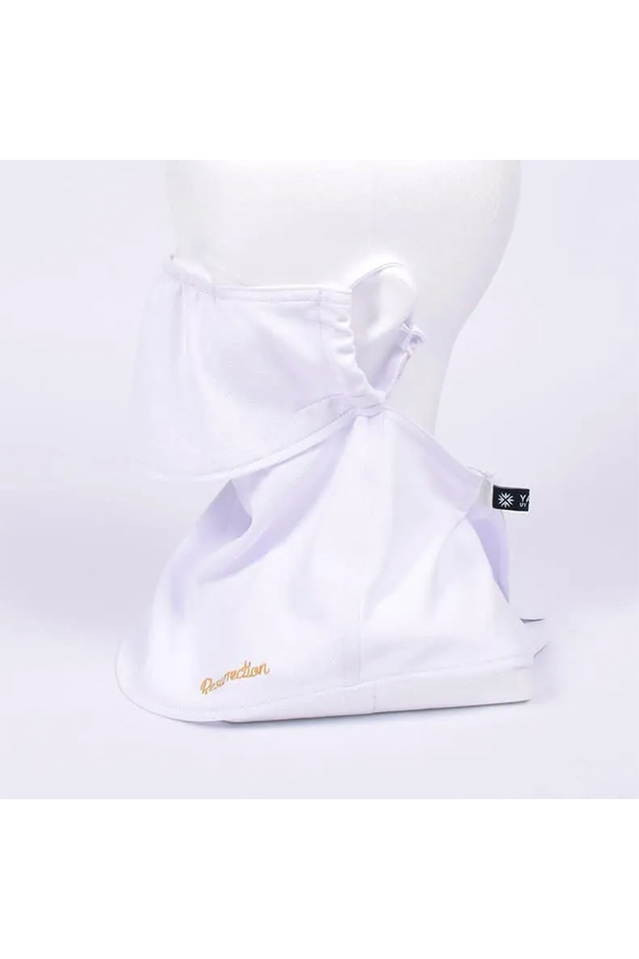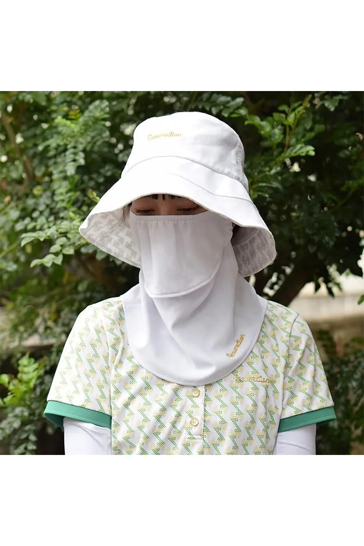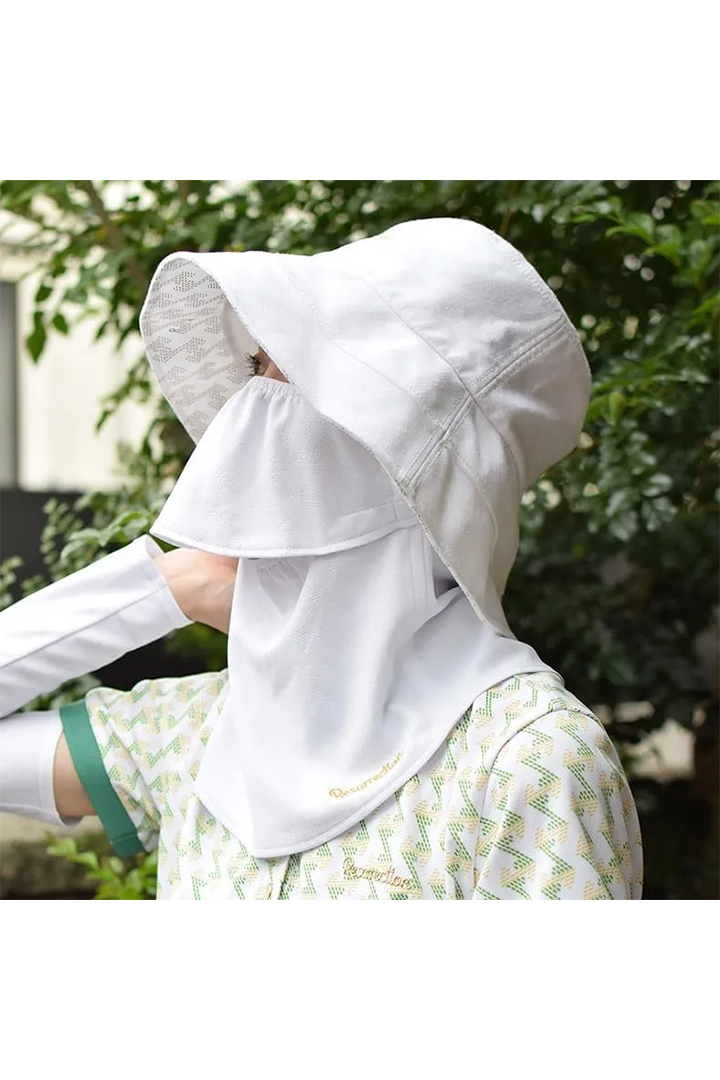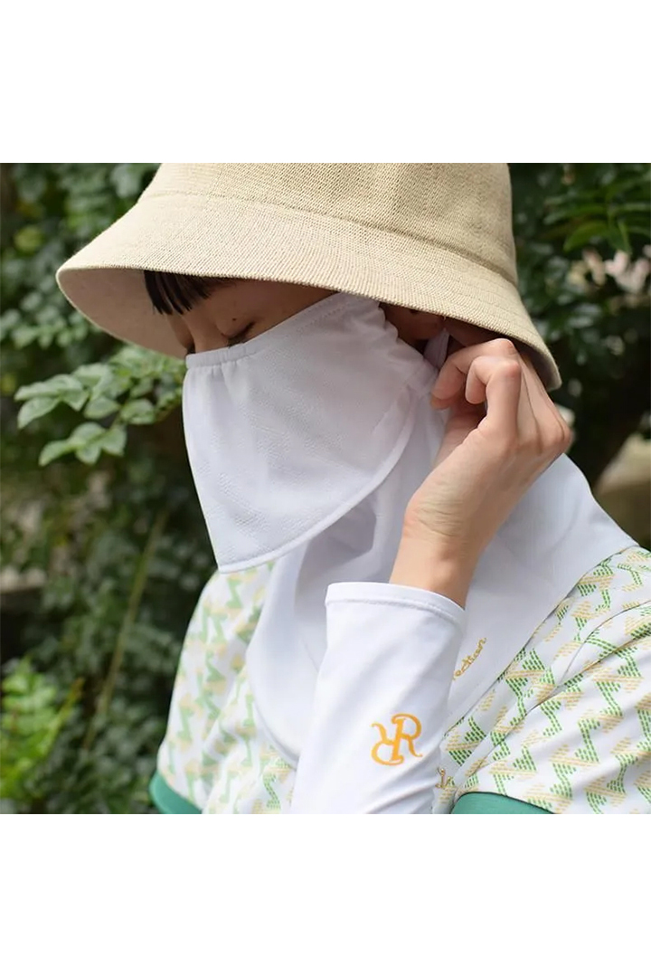 耳掛けタイプのシンプル設計で、プレー中でも素早く着脱可能。首元までしっかり覆うロングカット仕様で、日差しからの防御力をさらに強化。