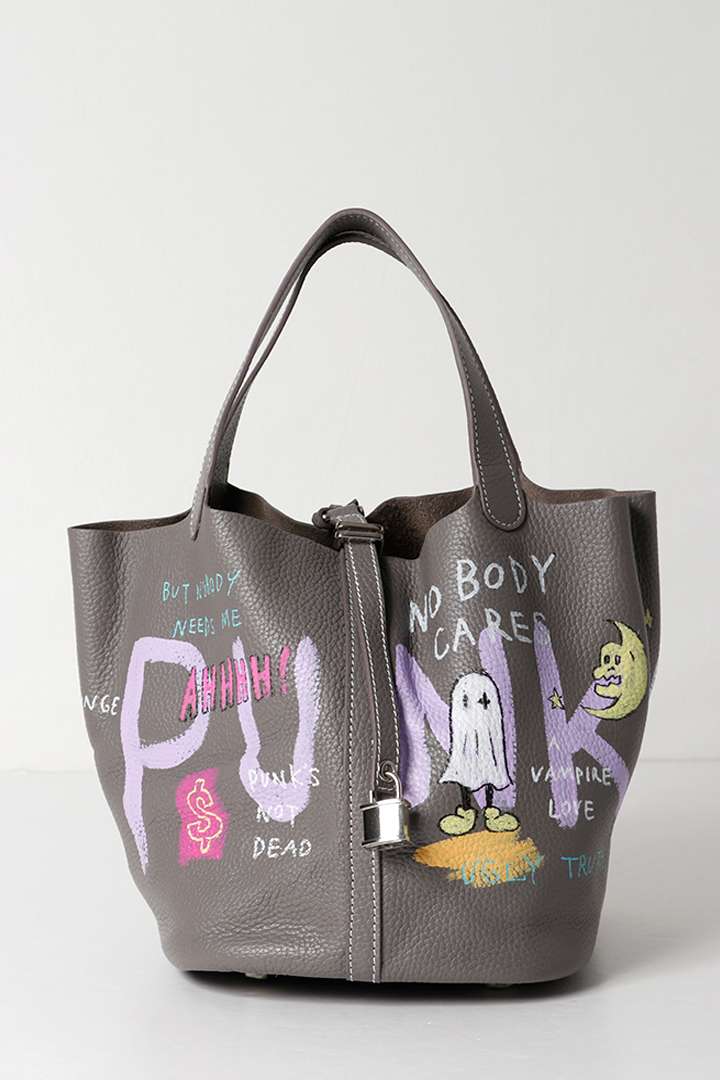 アーティスト、乾シンイチロウ(Shinichiro Inui)によりハンドペイントが施されたレザーバッグ。