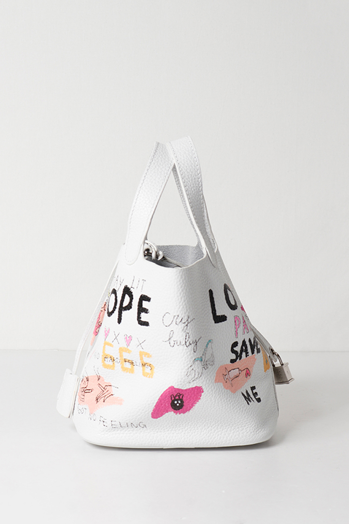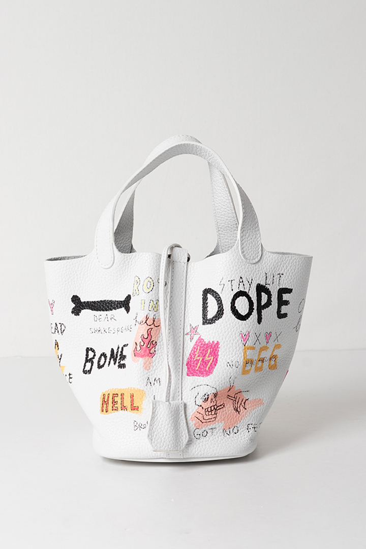 アーティスト、乾シンイチロウ(Shinichiro Inui)によりハンドペイントが施されたレザーバッグ。