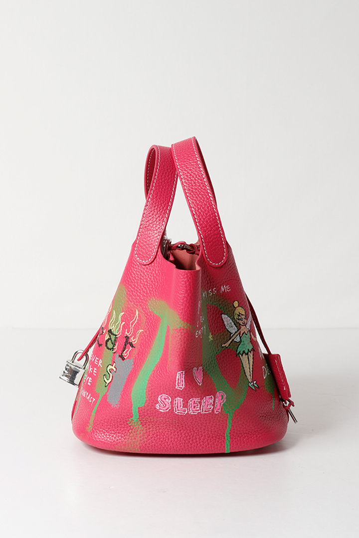アーティスト、乾シンイチロウ(Shinichiro Inui)によりハンドペイントが施されたレザーバッグ。