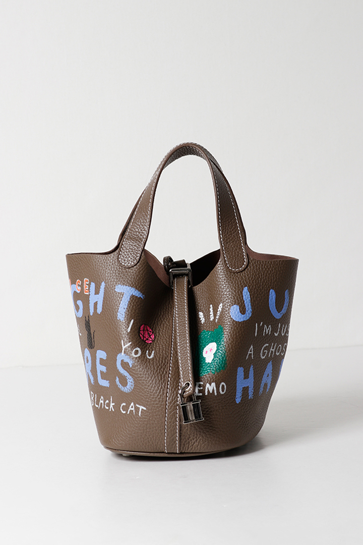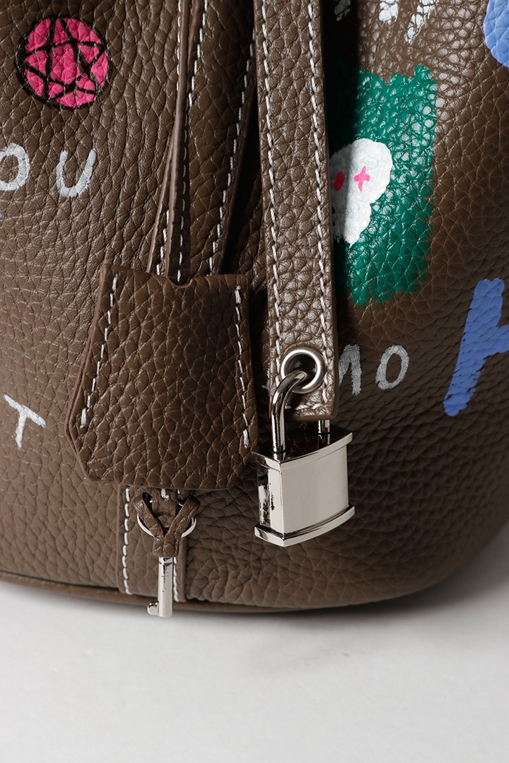 アーティスト、乾シンイチロウ(Shinichiro Inui)によりハンドペイントが施されたレザーバッグ。