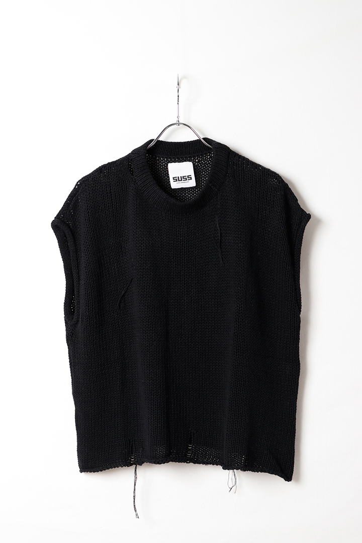 SUSS スス THE INTARSIA MUSCLE TEE SOLID{-BFS}[SS25CMT008-BLK-M]
